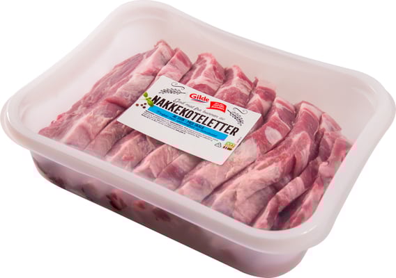 Nakkekoteletter av Svin m/Skalk 2kg fra Gilde Vekten er 2 kg. Produktet leveres av NORTURA SA (GILDE). Produktet ble første gang registrert 11.6.2023 og sist oppdatert 6.9.2023.