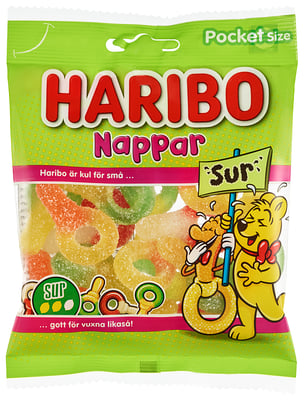 Nappar Sur 80g Haribo fra Haribo er et produkt innen Snacks & godteri, Godteri. Vekten er 80 g. Produktet leveres av HARIBO LAKRIS AS. Produktet ble første gang registrert 11.6.2023 og sist oppdatert 6.9.2023.
