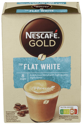 Nescafé Gold Flat White 100g fra NESCAFÉ er et produkt innen Drikke, Kaffe, Instant kaffe. Produktet er tilgjengelig hos Coop til en pris av 44.90 kr. Produktet inneholder følgende allergener: Melk. Produktet leveres av NESTLÉ NORGE AS. Produktet ble første gang registrert 15.7.2022 og sist oppdatert 16.7.2023. Prisen har holdt seg stabil på 44.90 kr.
