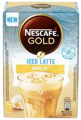 Nescafe Gold Iced Latte Vanilla 105g er et produkt innen Drikke, Kaffe, Instant kaffe. Vekten er 105 g. Produktet inneholder følgende allergener: Melk. Produktet leveres av AS NESTLÉ NORGE. Produktet ble første gang registrert 11.6.2023 og sist oppdatert 6.9.2023.