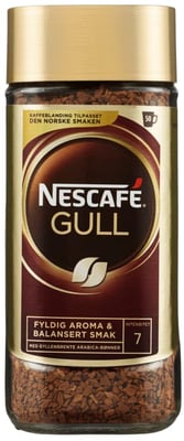 Nescafe Gull 100g fra Nescafe er et produkt innen Drikke, Kaffe, Instant kaffe. Produktet er tilgjengelig hos Joker til en pris av 86.90 kr. Vekten er 100 g. Produktet leveres av Nestle norge. Produktet ble første gang registrert 9.1.2022 og sist oppdatert 6.10.2023. Prisen har holdt seg stabil på 86.90 kr.