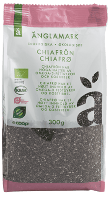 Änglamark Chiafrø 300g fra ÄNGLAMARK Produktet er tilgjengelig hos Coop til en pris av 37.90 kr. Produktet leveres av MIDSONA DANMARK A/S. Produktet ble første gang registrert 9.1.2022 og sist oppdatert 16.7.2023. Prisen har endret seg fra 39.90 kr til 37.90 kr over tid.