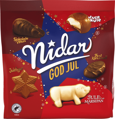 Nidar Favoritter Jul 340g fra NIDAR Produktet er tilgjengelig hos Coop til en pris av 39.90 kr. Produktet inneholder følgende allergener: Melk, Nøtter, Soya. Produktet leveres av ORKLA CONFECTIONERY & SNACKS NORGE. Produktet ble første gang registrert 4.11.2022 og sist oppdatert 16.7.2023. Prisen har endret seg fra 68.90 kr til 39.90 kr over tid.