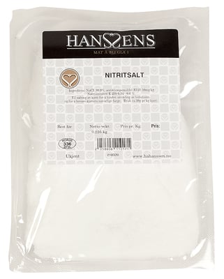 Nitrittsalt Ca 200g Hanssens fra Hanssens Vekten er 0.2 kg. Produktet leveres av H A HANSSEN A/S. Produktet ble første gang registrert 11.6.2023 og sist oppdatert 6.9.2023.