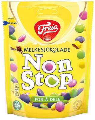 Non Stop Melkesjokolade 180 g fra Freia Produktet er tilgjengelig hos Oda til en pris av 41.90 kr. Vekten er 180 g. Produktet leveres av Mondelez Norge AS. Produktet ble første gang registrert 9.1.2022 og sist oppdatert 7.10.2023. Prisen har holdt seg stabil på 41.90 kr.