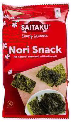Nori Snacks 10g Saitaku fra Saitaku er et produkt innen Middagstilbehør, Sushitilbehør, Nori. Produktet er tilgjengelig hos Meny til en pris av 39.90 kr. Vekten er 10 g. Produktet leveres av Oluf lorentzen as. Produktet ble første gang registrert 9.1.2022 og sist oppdatert 28.9.2023. Prisen har endret seg fra 44.90 kr til 39.90 kr over tid.