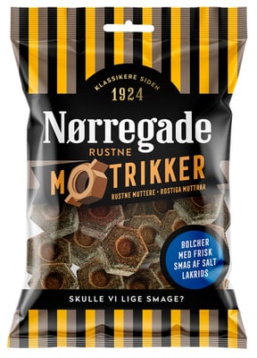 Nørregade Rustne Møtrikker 100g fra Nørregade Vekten er 100 g. Produktet inneholder følgende allergener: Gluten. Produktet leveres av SPANGSBERG CHOKOLADE AS. Produktet ble første gang registrert 11.6.2023 og sist oppdatert 6.9.2023.