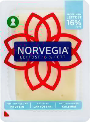 Norvegia® Lett er et alternativ for deg som ønsker den milde og unike Norvegia-smaken – men med mindre fett. Norvegia® Lett er merket med nøkkelhull, er proteinrik og inneholder kun 16 % fett. Norvegia® Lett er lagret i 4 måneder før den finner veien til ditt kjøleskap. Norvegia® Lett har samme bruksområder som de andre variantene, og passer godt både som terninger, en deilig salat eller revet i en lun omelett. Som de fleste faste hvite oster er Norvegia® laktosefri.