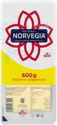 Norvegia Skiver 600g Tine fra TINE Vekten er 600 g. Produktet inneholder følgende allergener: Melk. Produktet leveres av TINE SA. Produktet ble første gang registrert 11.6.2023 og sist oppdatert 6.9.2023.