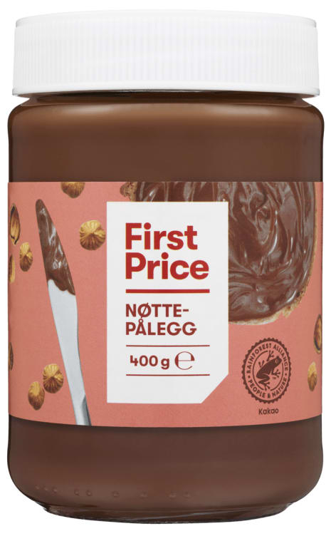 Nøttepålegg fra First Price. God smak av sjokolade og hasselnøtter.