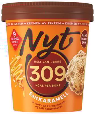 Nyt er en lettere iskrem laget med mindre fløte og sukker. SaltKARAMELL er en smaksrik karamellis med salt karamellsaus. Inneholder kun 301 kalorier per boks. Nyt er i tillegg rik på proteiner.