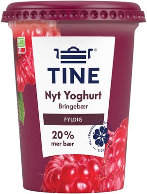TINE® Yoghurt Nyt Bringebær er en av flere velsmakende varianter i Nyt-serien. Det er en fyldig og god yoghurt, som er tilsatt ekstra mye frukt.