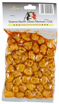 Oliven Grønn u/Sten m/Chili 250g Gourmet Line