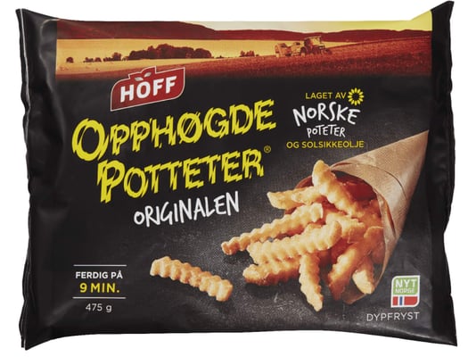 HOFF Opphøgde Potteter er laget av bare norske kvalitetspoteter og solsikkeolje. Kun de beste potetene blir valgt ut til å bli Opphøgde Potteter. HOFF Opphøgde Potteter gjør dårlig tid til god tid.
