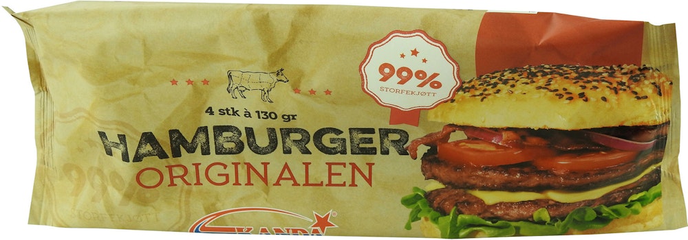 Original Hamburger 4 Stk, 520 g fra Kanda er et produkt innen Kjøtt, Hamburger. Produktet er tilgjengelig hos Oda til en pris av 135.70 kr. Vekten er 520 g. Produktet leveres av KANDA AS. Produktet ble første gang registrert 9.1.2022 og sist oppdatert 6.10.2023. Prisen har holdt seg stabil på 135.70 kr.