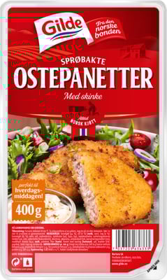 Ostepanetter 400g Gilde fra Gilde er et produkt innen Middag, Ferdigmåltider, Panert kjøtt. Produktet er tilgjengelig hos SPAR til en pris av 74.90 kr. Vekten er 400 g. Produktet inneholder følgende allergener: Gluten, Melk. Produktet leveres av Nortura sa g. Produktet ble første gang registrert 9.1.2022 og sist oppdatert 6.10.2023. Prisen har holdt seg stabil på 74.90 kr.