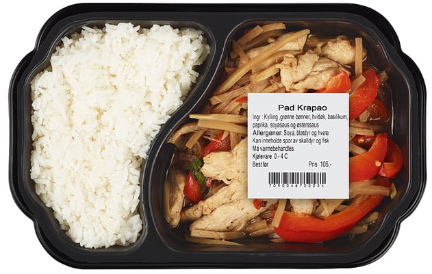 Pad Krapao fra Nawarat Thai Mat Vekten er 745 g. Produktet inneholder følgende allergener: Bløtdyr, Soya. Produktet leveres av NAWARAT THAI MAT AS. Produktet ble første gang registrert 11.6.2023 og sist oppdatert 14.3.2026.