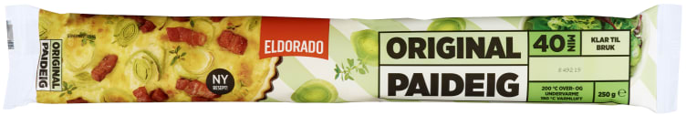Paideig 250g Eldorado fra Eldorado er et produkt innen Middagstilbehør, Deiger og rører, Paideig. Produktet er tilgjengelig hos SPAR til en pris av 25.50 kr. Vekten er 250 g. Produktet inneholder følgende allergener: Gluten. Produktet leveres av Unil. Produktet ble første gang registrert 9.1.2022 og sist oppdatert 6.10.2023. Prisen har holdt seg stabil på 25.50 kr.