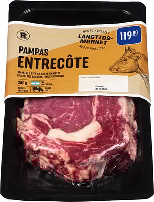 Pampas Entrecôte 250g Rema 1000 fra REMA 1000 Vekten er 250 g. Produktet leveres av REMA 1000 NORGE AS (LEV.). Produktet ble første gang registrert 11.6.2023 og sist oppdatert 6.9.2023.