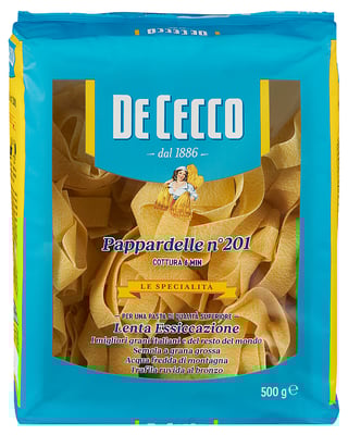 Pappardelle 500g De Cecco fra De Cecco er et produkt innen Middag, Pasta, Båndspagetti. Vekten er 500 g. Produktet inneholder følgende allergener: Gluten. Produktet leveres av OLUF LORENTZEN AS. Produktet ble første gang registrert 11.6.2023 og sist oppdatert 6.9.2023.