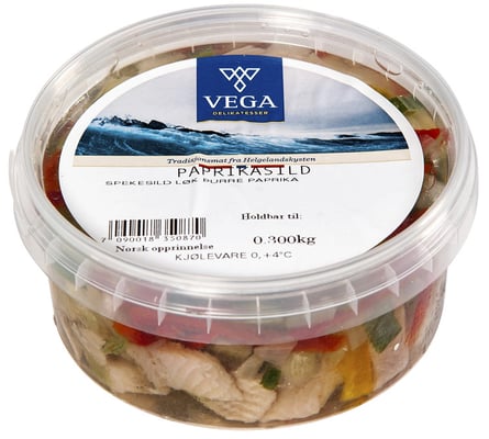 Paprikasild 300g Vekten er 0.3 kg. Produktet inneholder følgende allergener: Fisk. Produktet leveres av VEGA DELIKATESSER AS. Produktet ble første gang registrert 11.6.2023 og sist oppdatert 6.9.2023.