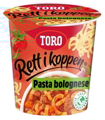 Pasta Bolognese 66g Rett i Koppen fra Toro er et produkt innen Middag, Middag kit, Pastarett kit. Produktet er tilgjengelig hos Joker til en pris av 34.90 kr. Vekten er 65 g. Produktet inneholder følgende allergener: Gluten, Selleri. Produktet leveres av Orkla foods norge as. Produktet ble første gang registrert 9.1.2022 og sist oppdatert 6.10.2023. Prisen har holdt seg stabil på 34.90 kr.