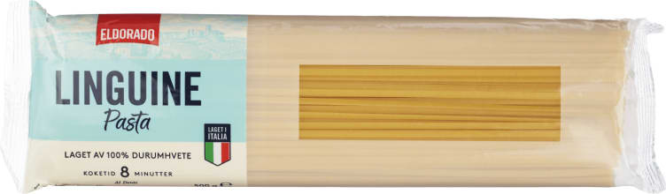 Pasta Linguine 500g Eldorado fra Eldorado er et produkt innen Middag, Pasta, Spagetti. Produktet er tilgjengelig hos Joker til en pris av 33.90 kr. Vekten er 500 g. Produktet inneholder følgende allergener: Gluten. Produktet leveres av Unil. Produktet ble første gang registrert 9.1.2022 og sist oppdatert 6.10.2023. Prisen har holdt seg stabil på 33.90 kr.