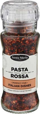 Pasta Rossa Hvitløk, Tomat, Pepper & Salt, 80 g fra Santa Maria er et produkt innen Middagstilbehør, Sauser, Øvrig saus. Produktet er tilgjengelig hos Oda til en pris av 55.10 kr. Vekten er 80 g. Produktet leveres av Santa Maria Norge AS. Produktet ble første gang registrert 9.1.2022 og sist oppdatert 6.10.2023. Prisen har endret seg fra 62.50 kr til 55.10 kr over tid.
