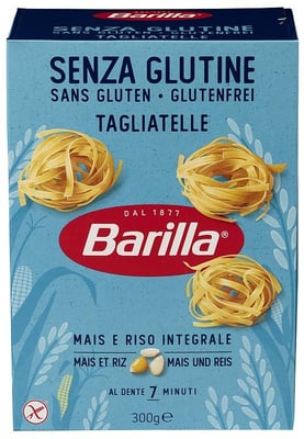 Pasta Tagliatelle Glutenfri 300 g fra Barilla Produktet er tilgjengelig hos Oda til en pris av 41.30 kr. Vekten er 300 g. Produktet leveres av Barilla Norge AS. Produktet ble første gang registrert 9.1.2022 og sist oppdatert 7.10.2023. Prisen har endret seg fra 40.10 kr til 41.30 kr over tid.