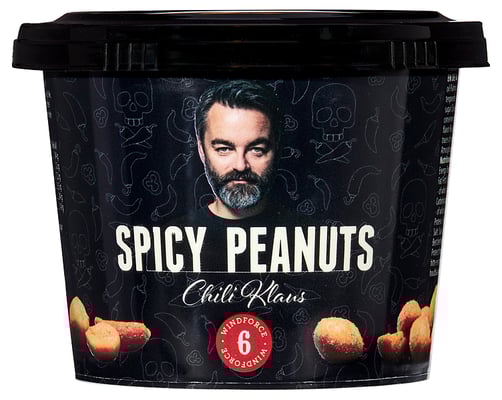 Peanøtter 91%, palmeolje, salt, dekstrose, maltodekstrin, tomatpulver, krydder (chili (jalapeno, habanero 0,6%), paprika), løk, sukker, gjærekstrakt, konserveringsmiddel: melkesyre E270, surhetsregulerende middel: kalsiumlaktat E327, sitronsyre E330, røykaroma, krydderekstrakter.