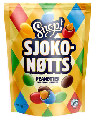 Sjokoladedekte peanøtter med farget sukkerskall. God smak av melkesjokolade og ristede peanøtter