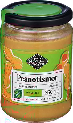 Peanøttsmør 350g Økologisk Kolonihagen fra Kolonihagen Vekten er 350 g. Produktet inneholder følgende allergener: Peanøtter. Produktet leveres av REMA 1000 NORGE AS (LEV.). Produktet ble første gang registrert 11.6.2023 og sist oppdatert 6.9.2023.