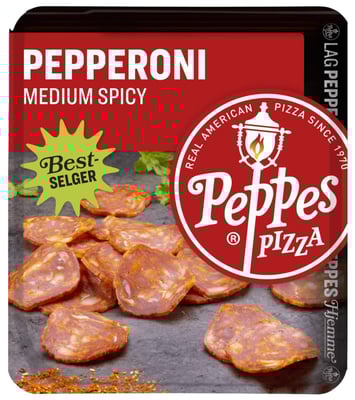 Pepperoni 70g Peppes fra Peppes er et produkt innen Pålegg & frokost, Kjøttpålegg, Saltpølser. Produktet er tilgjengelig hos Joker til en pris av 32.90 kr. Vekten er 70 g. Produktet leveres av Synnøve finden as. Produktet ble første gang registrert 9.1.2022 og sist oppdatert 6.10.2023. Prisen har holdt seg stabil på 32.90 kr.