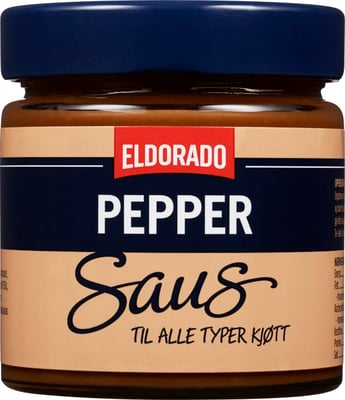 Ferdiglaget peppersaus laget på fløte, rødvin og tomat, smaksatt med sennep og ulike pepper. Serveringsklar saus.