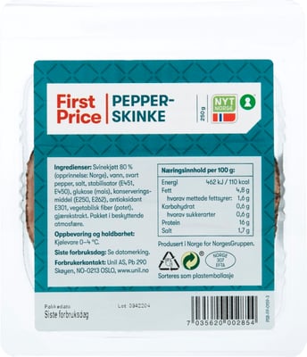 Pepperskinke fra First Price. Skinke med en frisk og mild smak av pepper.