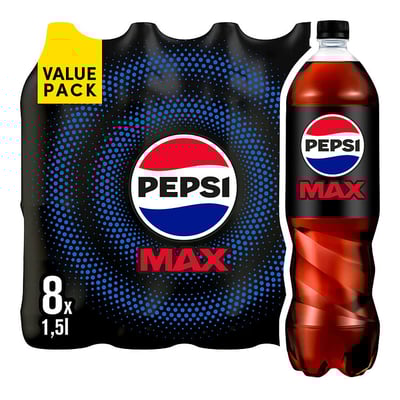 Pepsi Max 1,5lx8 flaske fra Pepsi er et produkt innen Drikke, Brus. Produktet er tilgjengelig hos Meny til en pris av 122.00 kr. Vekten er 12000 ml. Produktet leveres av Ringnes as. Produktet ble første gang registrert 30.7.2022 og sist oppdatert 30.9.2023. Prisen har holdt seg stabil på 122.00 kr.