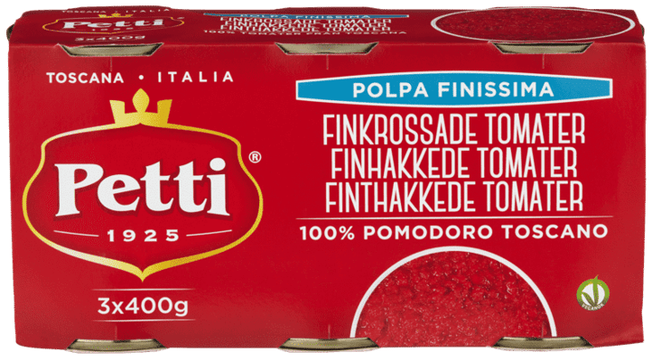 Petti Finhakket Tomater 3x400g fra PETTI Produktet er tilgjengelig hos Coop til en pris av 45.90 kr. Produktet leveres av GEIA FOOD AS. Produktet ble første gang registrert 9.1.2022 og sist oppdatert 16.7.2023. Prisen har holdt seg stabil på 45.90 kr.