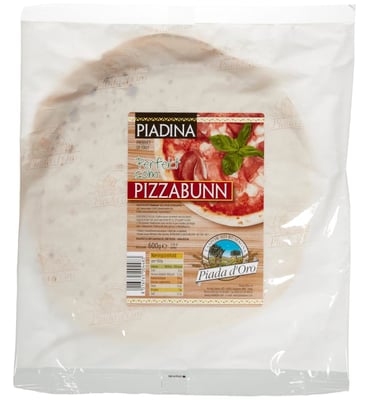 Piadina Classica 600g Piada D'Oro er et produkt innen Middagstilbehør, Deiger og rører, Pizzabunn. Produktet er tilgjengelig hos Meny til en pris av 126.00 kr. Vekten er 600 g. Produktet inneholder følgende allergener: Gluten. Produktet leveres av Oluf lorentzen as. Produktet ble første gang registrert 10.1.2022 og sist oppdatert 7.10.2023. Prisen har holdt seg stabil på 126.00 kr.