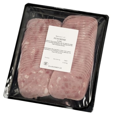 Norsk svinekjøtt (76%), vann, salt, sukkerarter, krydder, konserveringsmiddel E250, stabilisator E407 E450, antioksidant E301