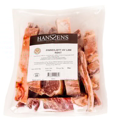 Pinnekjøtt av Lam Røkt Hanssens fra Hanssens Vekten er 1 kg. Produktet leveres av H A HANSSEN A/S. Produktet ble første gang registrert 11.6.2023 og sist oppdatert 6.9.2023.