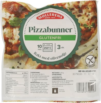Pizzabunner Mini glutenfri 3stk 225g Møllerens
