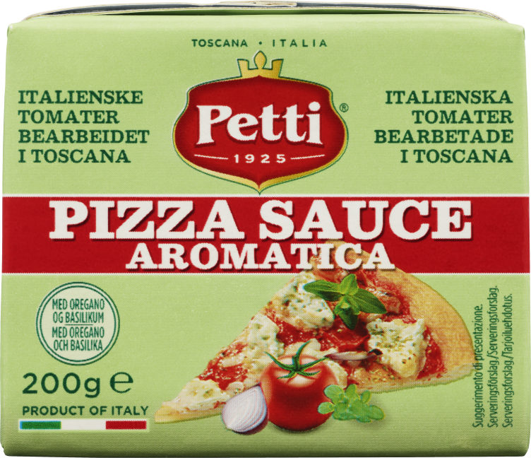 Pizzasaus 200g Petti fra Petti er et produkt innen Middagstilbehør, Sauser, Pizzasaus. Produktet koster 17.90 kr. Produktet leveres av Geia food. Produktet ble første gang registrert 8.3.2026 og sist oppdatert 14.3.2026.