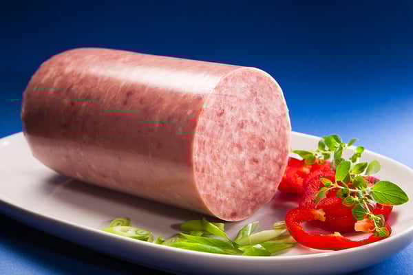 Svinekjøtt 59%, vann, stivelse, dekstrose, salt, kollagenprotein av storfe, stabilisator E451, antioksidant E316, konserveringsmiddel E250