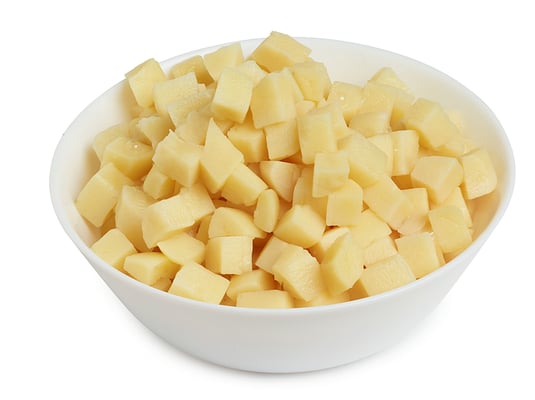 Poteter, vann, salt, konserveringsmiddel (E211), surhetsregulerende middel (E509), fargestabiliserende middel (E300)