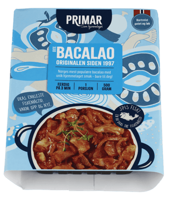 Primar Ekte Bacalao Originalen fra PRIMAR er et produkt innen Middag, Fiskeretter, Bacalao. Produktet er tilgjengelig hos Coop til en pris av 72.90 kr. Produktet inneholder følgende allergener: Fisk. Produktet leveres av PRIMAR MAT AS. Produktet ble første gang registrert 9.1.2022 og sist oppdatert 16.7.2023. Prisen har holdt seg stabil på 72.90 kr.