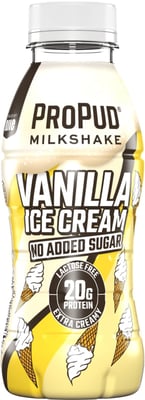 NJIE ProPud Protein Milkshake Vanilla - en kremet og glatt milkshake med smak av vaniljeis. Uten tilsatt sukker, laktosefri og med 20 g protein per flaske.