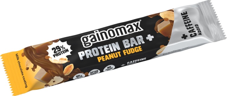 Gainomax Peanut Fudge Koffein Protein Bar med smak av peanøtt og karamell. Baren inneholder ca. 17g protein og 25g karbohydrater per pakke (60g). Inneholder koffein for økt fokus og årvåkenhet. Våre proteinbarer er gode etter trening eller som mellommåltid og er for deg som har en aktiv livsstil og ønsker å holde kroppen i form.
