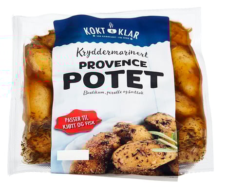 Provencepotet 500 g Kokt og Klar fra Kokt og Klar er et produkt innen Middag, Potetretter, Kokt potet. Vekten er 500 g. Produktet leveres av ART NOR AS. Produktet ble første gang registrert 11.6.2023 og sist oppdatert 6.9.2023.
