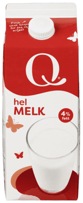 Q Helmelk 4% 1,75l fra Q Produktet er tilgjengelig hos Coop til en pris av 38.10 kr. Produktet inneholder følgende allergener: Melk. Produktet leveres av Q-MEIERIENE AS. Produktet ble første gang registrert 9.1.2022 og sist oppdatert 16.7.2023. Prisen har endret seg fra 35.90 kr til 38.10 kr over tid.