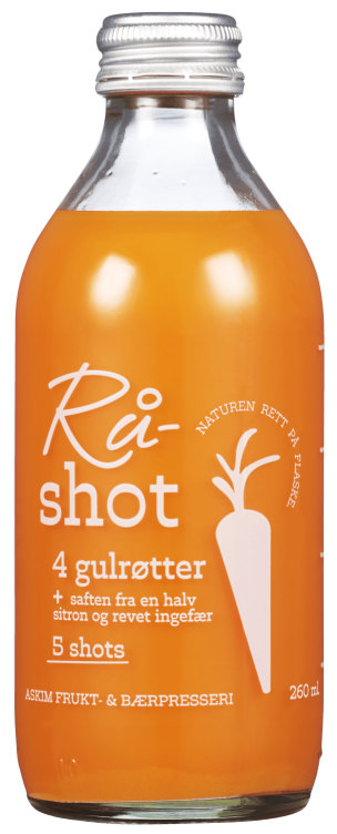 Råshot Gulrot 260ml Askim fra Askim er et produkt innen Personlige artikler, Helsekost, Kosttilskudd. Produktet koster 69.90 kr. Produktet leveres av Askim frukt- og bærpresseri. Produktet ble første gang registrert 8.3.2026 og sist oppdatert 14.3.2026.